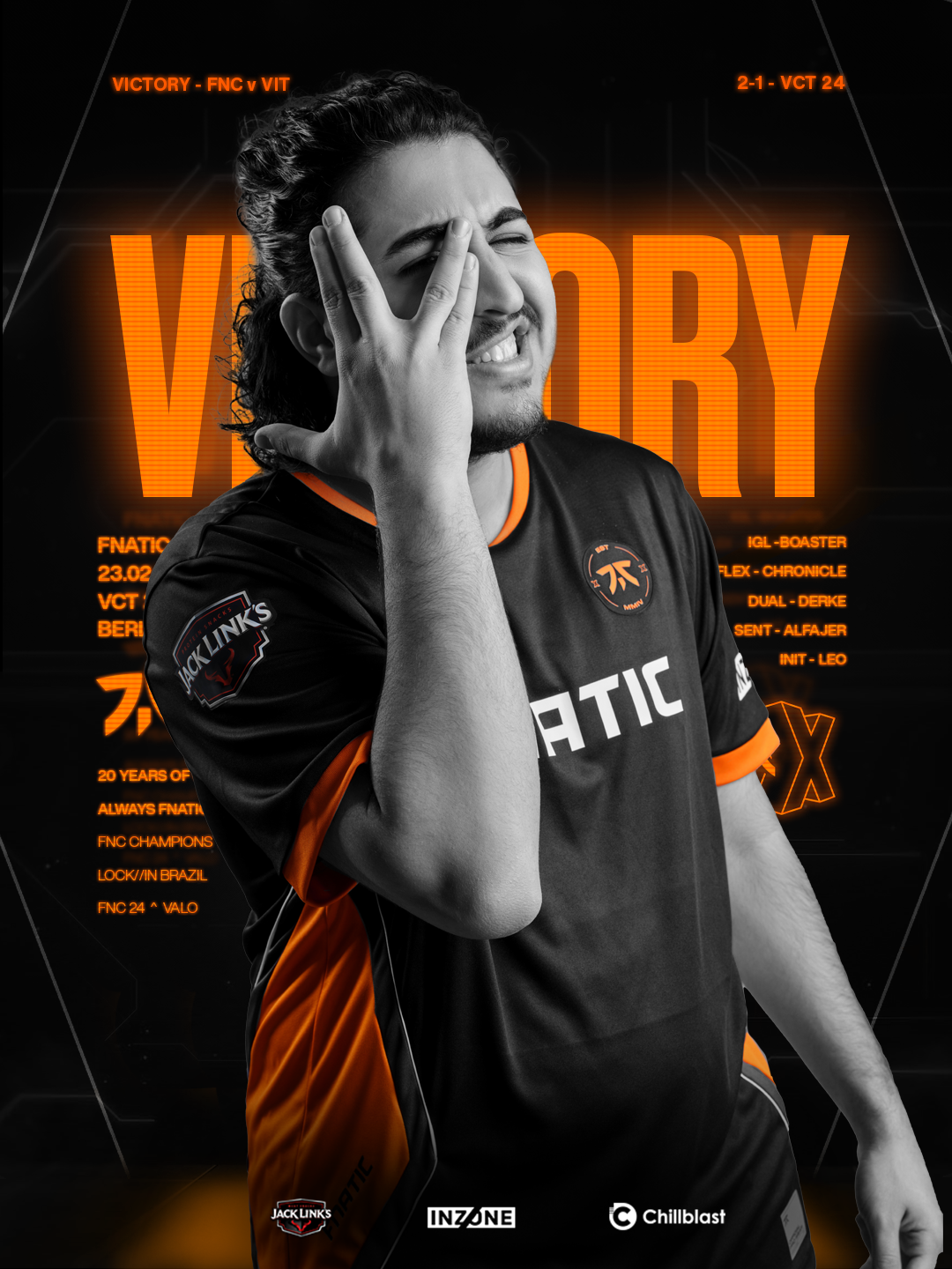 ValorantA compilation of work produced for Fnatic's Valorant team from 2020 to 2024. This includes match coverage on social media, video content assets, and the team's visual identity across multiple platforms.